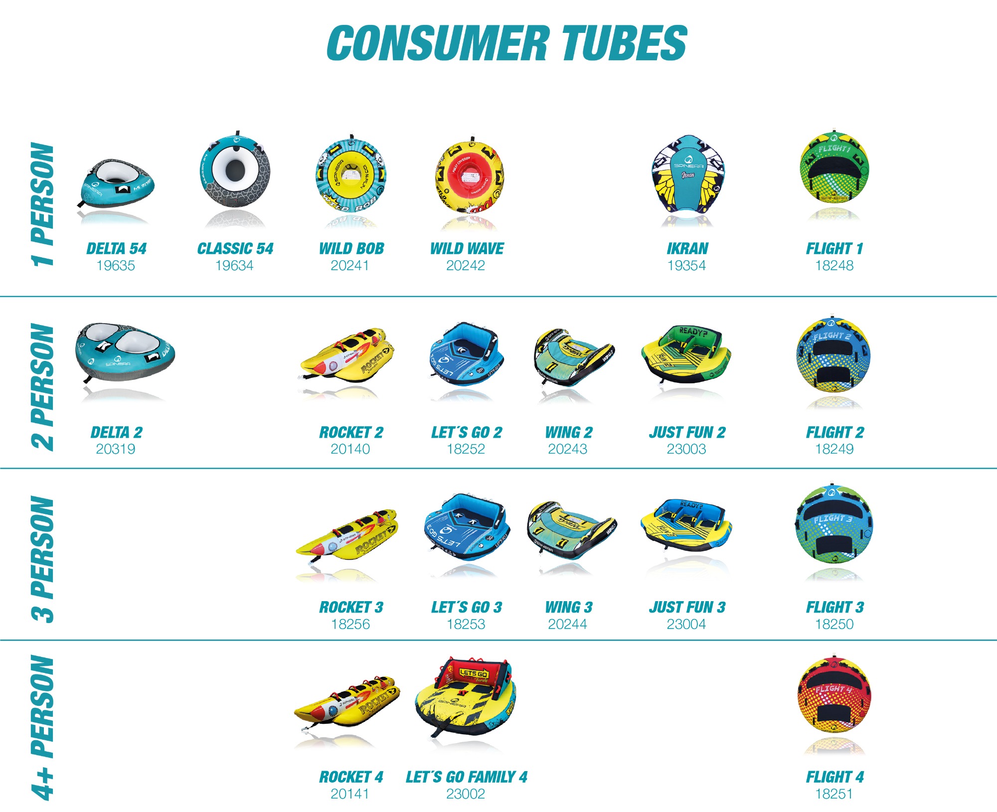 Our range is characterised by a huge selection of different tubes for big and small water sports enthusiasts and provides fun and thrills.